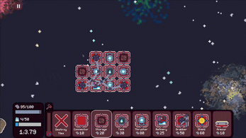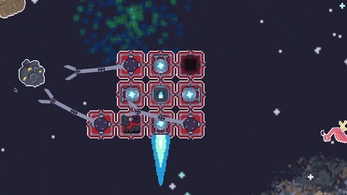 Build tiles onto your ship using collected space junk. Once you have gathered a large amount of resources, you can use the scale slider to build bigger tiles. Scaled tiles are much more efficient at their jobs than a grid of their smaller variants in the same footprint would ever be.